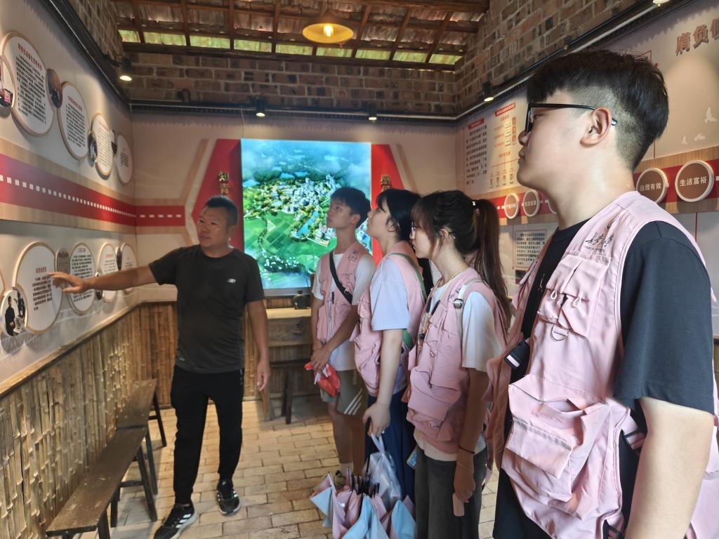 7月25日,实践队参观西乡塘区三塘镇围村那井坡家风家训馆。讲解人员结合本地区民族文化的保护与传承讲述了该村村民守家规、尊家训的优良传统,增强了队员们对传统美德的了解以及对家庭教育重要性的认识。随后,实践队与围村村干部开展座谈交流。从村情村史到文化交流交融,村干部们将围村被评选为“全国民族团结示范村”的发展历程娓娓道来。同学们积极参与讨论,分享自己的见解和感受。家是最小国,国是千万家。民族地区通过开展家风家训建设活动,利用历史文化资源,增强思想引领,大力弘扬中华民族传统美德,多点发力助力铸牢中华民族共同体意识。