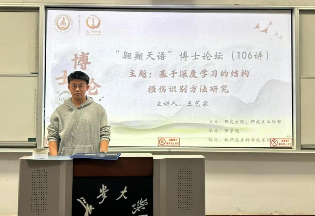 12月4日下午,由研究生院、研究生工作部主办,永利集团88304官网承办,校研究生科学技术协会协办的“翱翔天语”博士论坛第106讲在南校区北院103教室顺利举办。永利集团88304官网博士研究生王艺霖作了题为“基于深度学习的结构损伤识别方法研究”的报告,相关学院共30余名师生参加讲座。